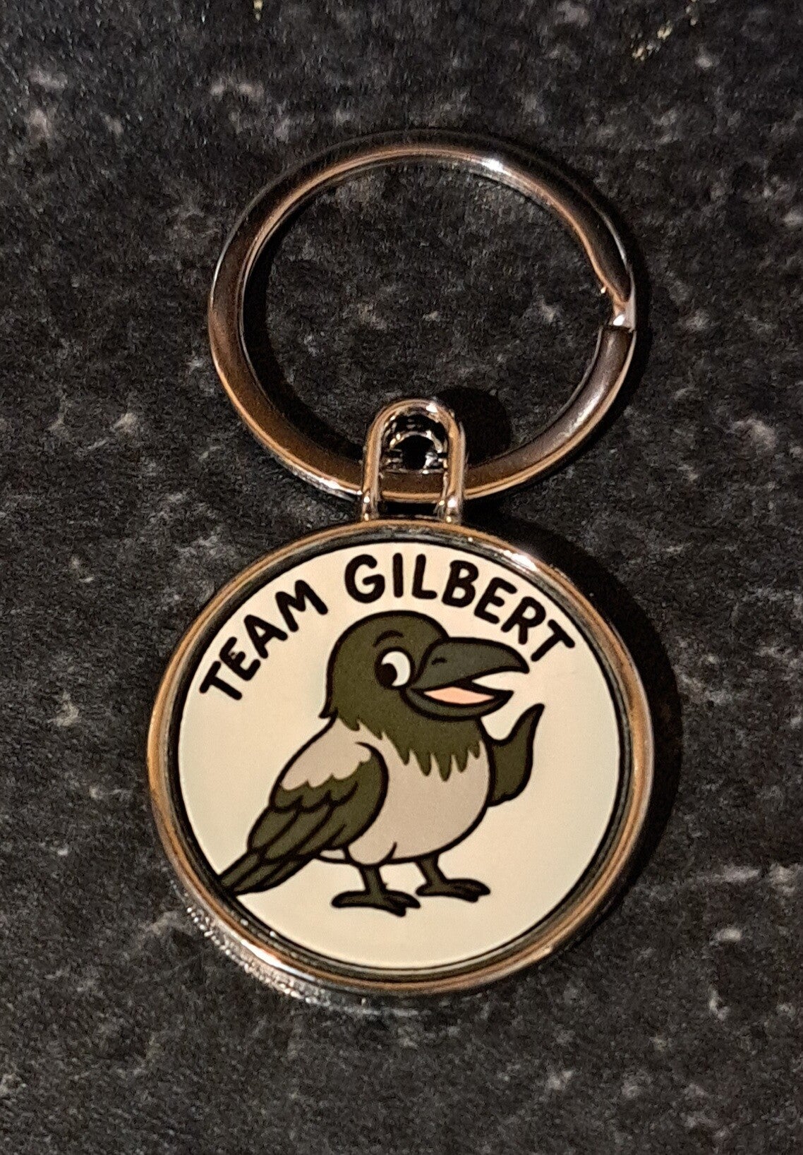 Get your very own "Team Gilbert" keyring. The image appears on both sides of the disc, ensuring he is always on show